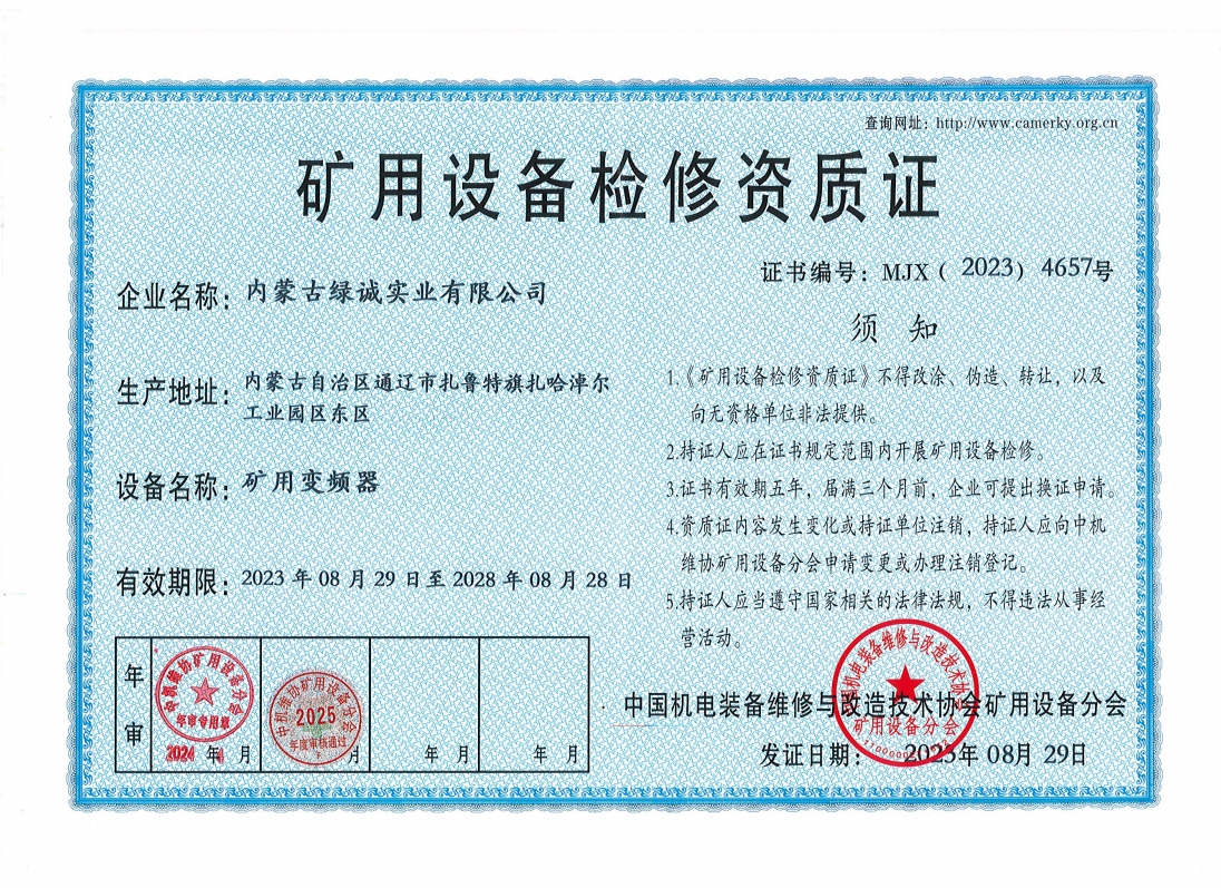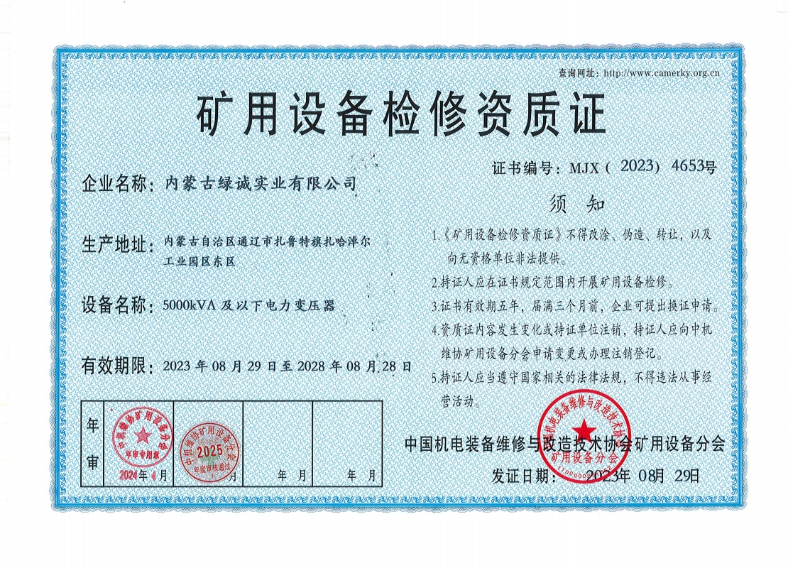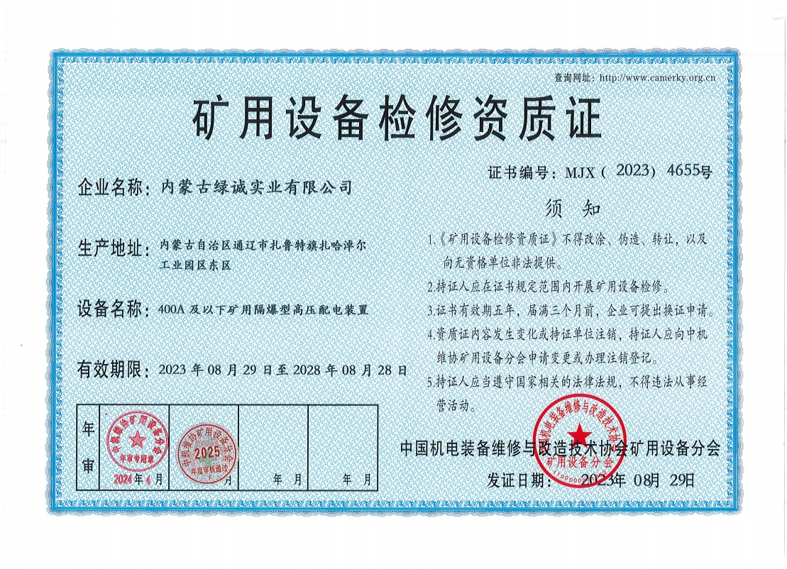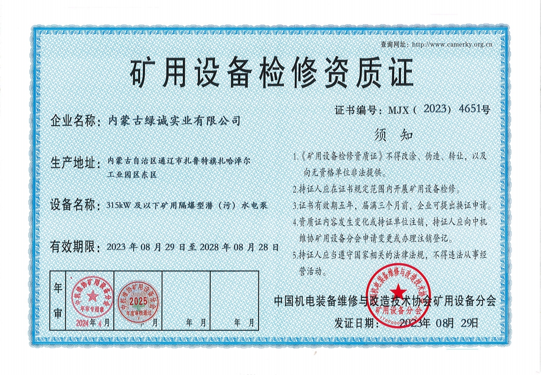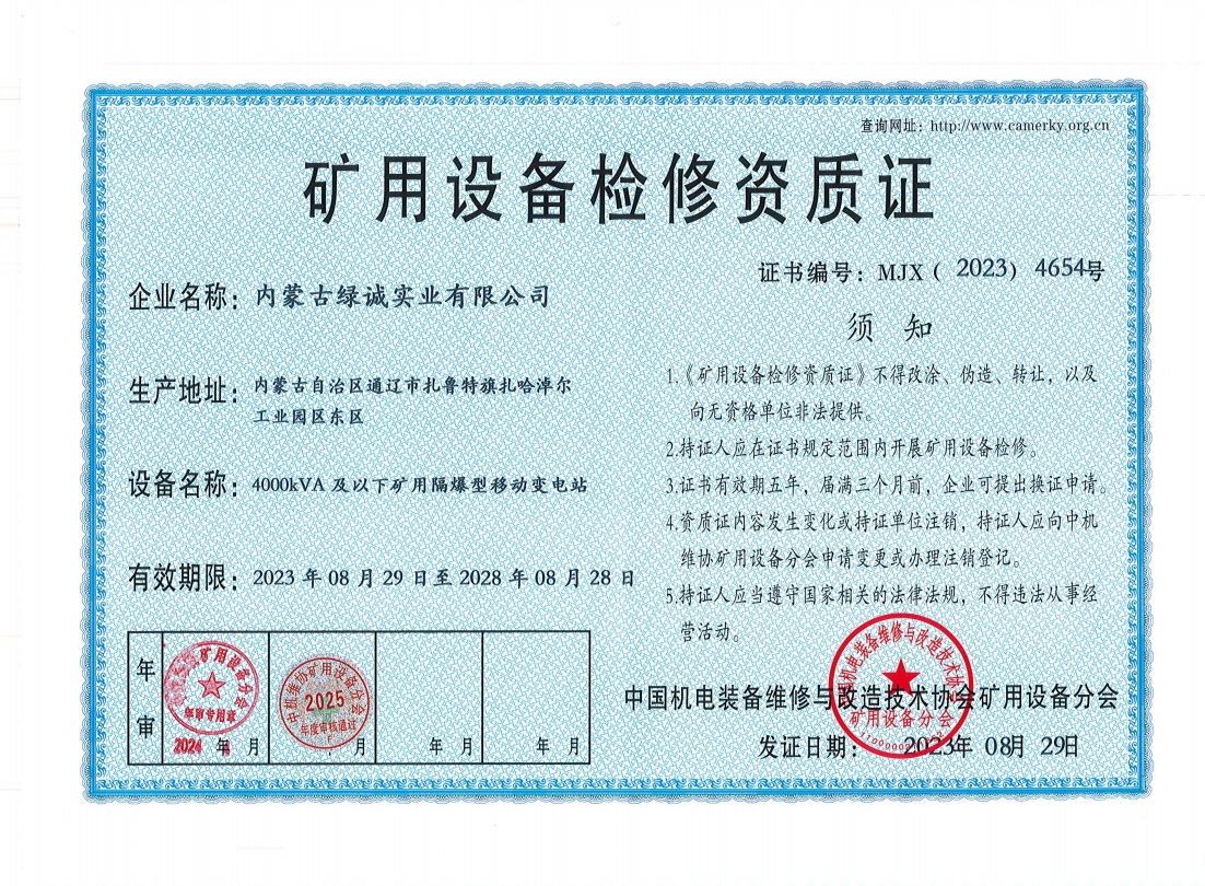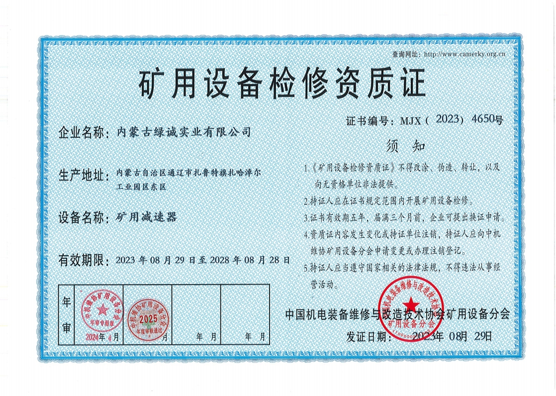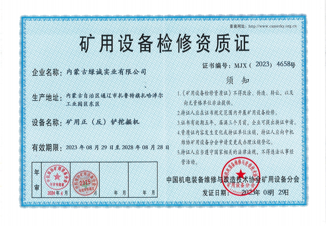 2018年我公司通過中國機電裝備維修與改造技術(shù)協(xié)會礦用設(shè)備分會審核并取得了9項礦用設(shè)備檢修資質(zhì)證書。公司本著“誠信為本 質(zhì)量為先 全心全意為客戶 ”的服務(wù)理念,圓滿完成各個廠礦的機械維修及配套服務(wù),期待與您共同合作。